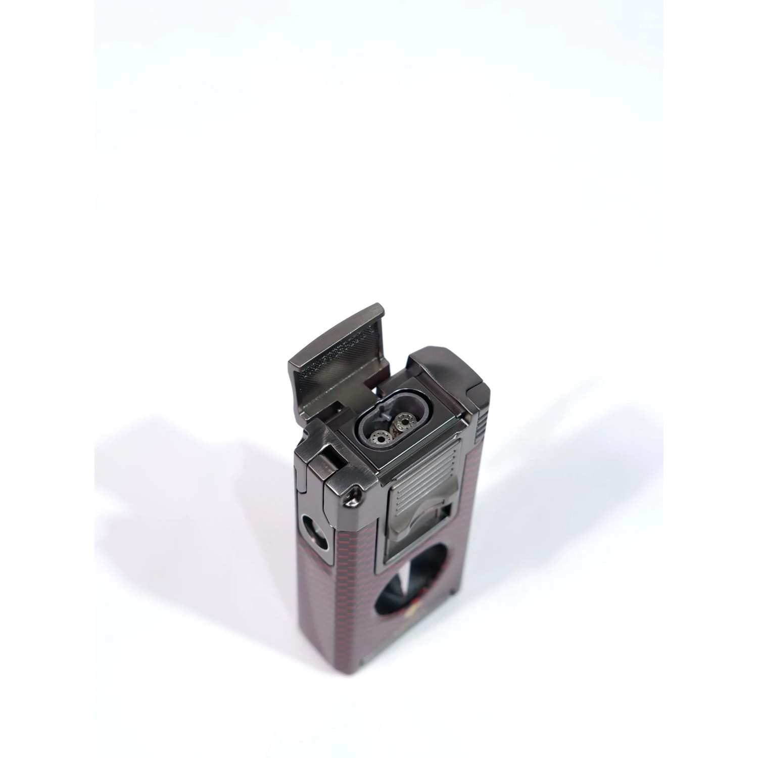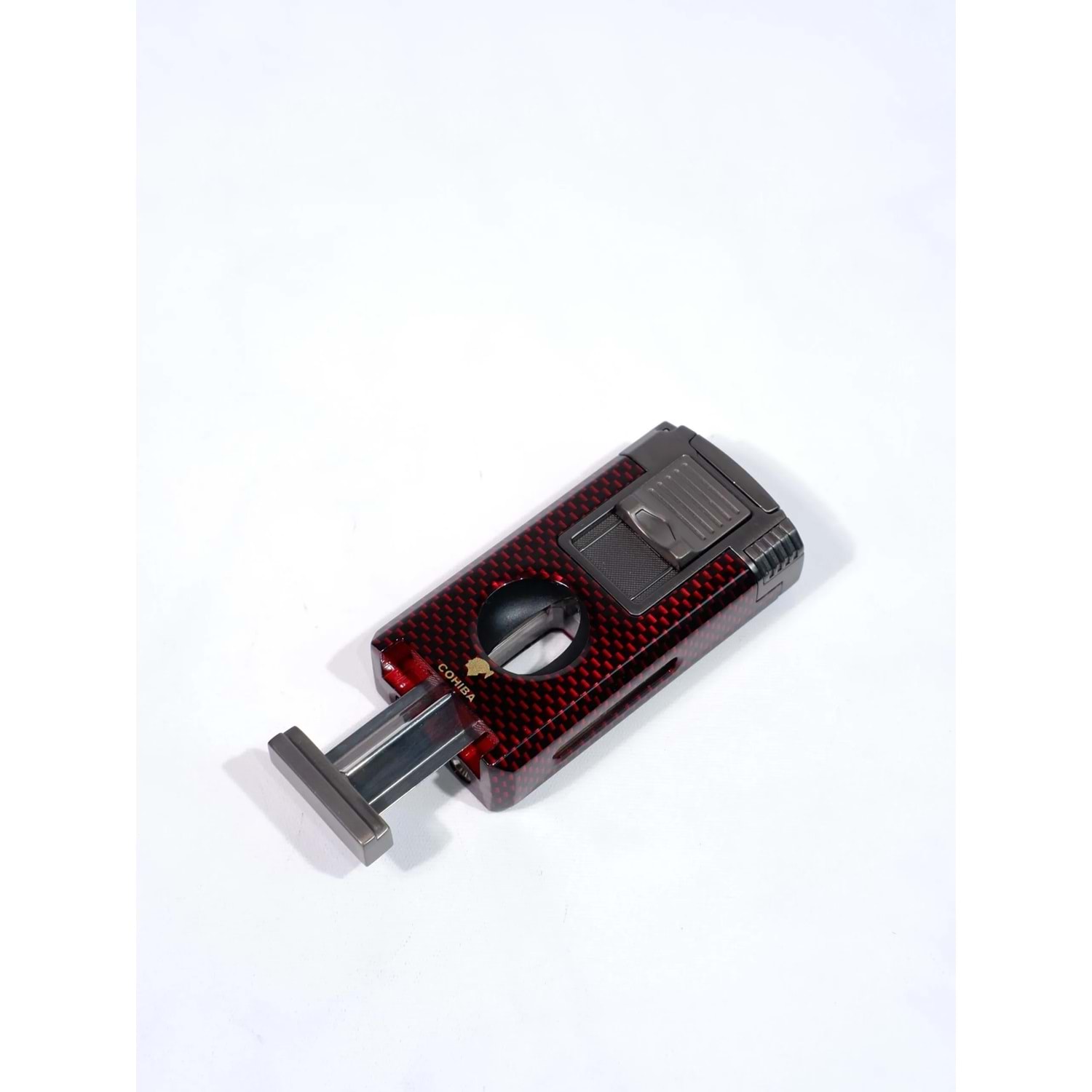 COHIBA ÇAKMAK V- CUTTER VE TOURCLU SİYAH-GREY-KIRMIZI ÇİFT PÜRMÜZLÜ ÇAKMAK CCM0761