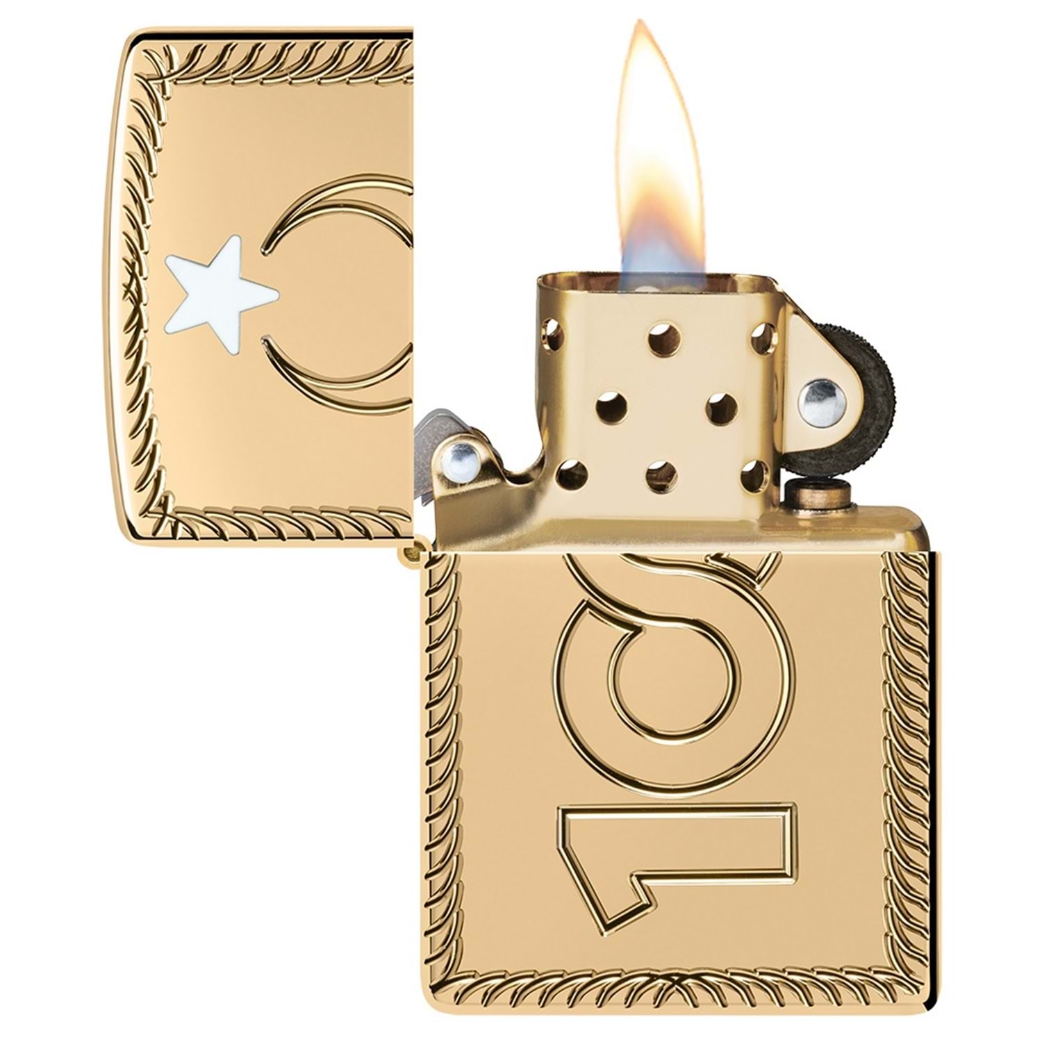 Türkiye Cumhuriyeti'nin kuruluşunun 100. yılını kutlamak için tasarlanmış bu özel Zippo çakmak, şıklığı ve anlamlı sembolleriyle öne çıkıyor. Ömür boyu garantisi ve yüksek kaliteli işçiliği ile uzun ömürlü bir kullanım sunar. Çakmağın ön yüzünde yıldız ve hilal detaylarıyla tamamlanan modern bir 100. yıl motifi yer alıyor.
