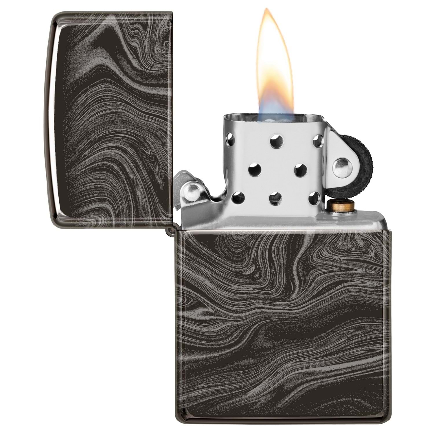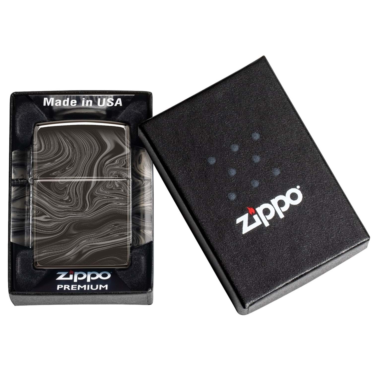 Simsiyah "Ebony", Zippo'nun imzasını taşıdığı bir kaplama, abanoz siyahını ve parlak görünümünü karakterize ediyor. Her modeli ışık altında farklı bir duruşa sahiptir.