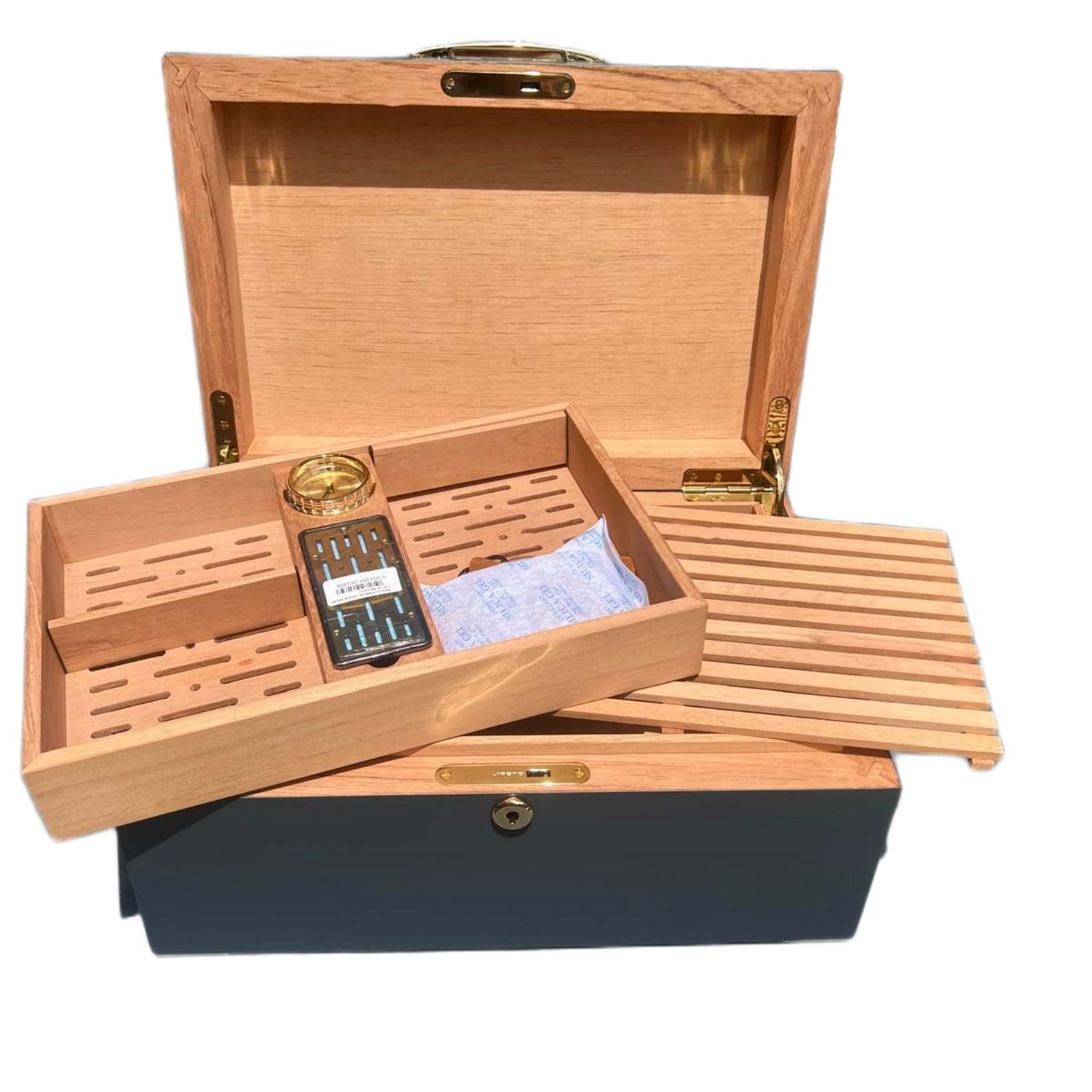 ANGELO HUMİDOR GERÇEK AHŞAP 120 LİK ANTRASİT