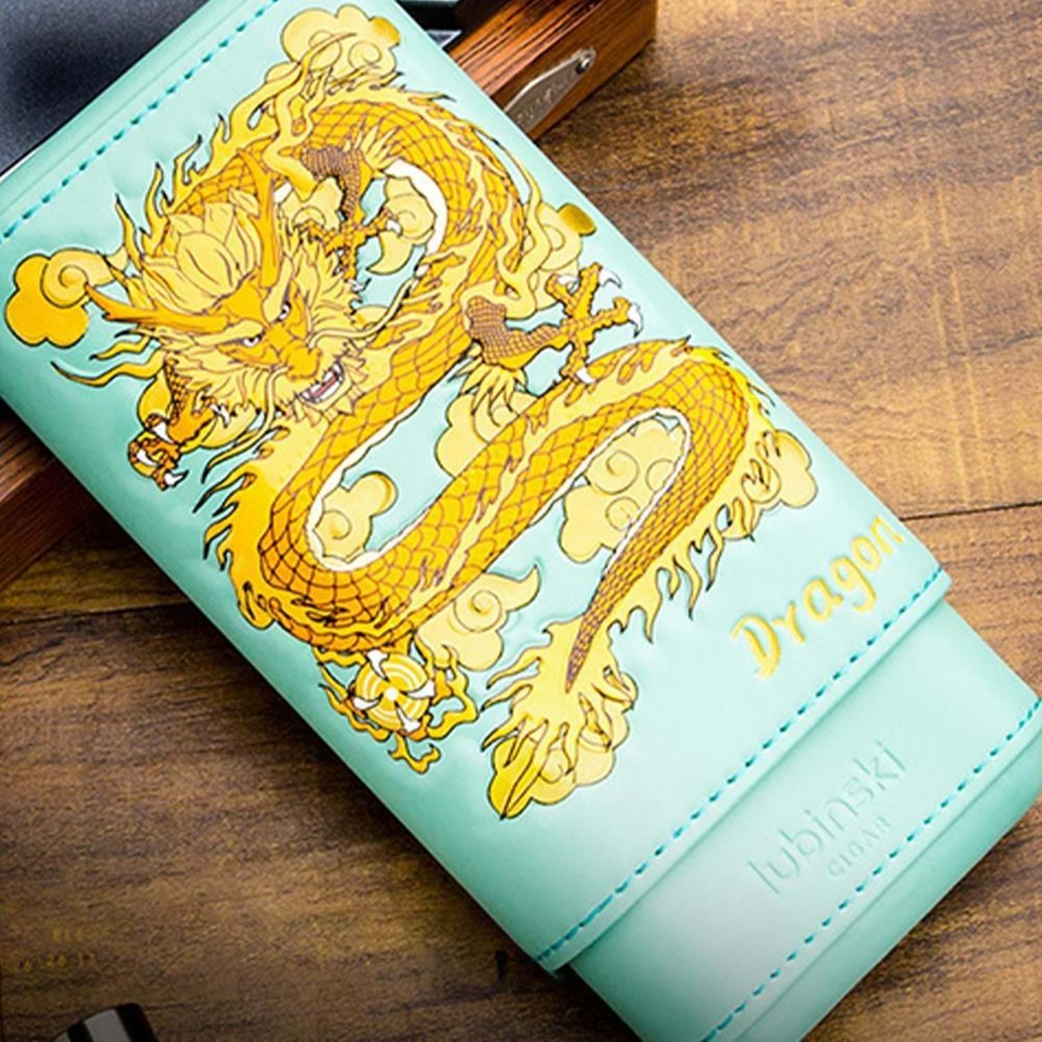 LUBİNSKİ SPECİAL EDT. ELEGANT DRAGON GERÇEK DERİ 3 LÜ PURO KILIFI TURKUAZ YJA-50021-BL